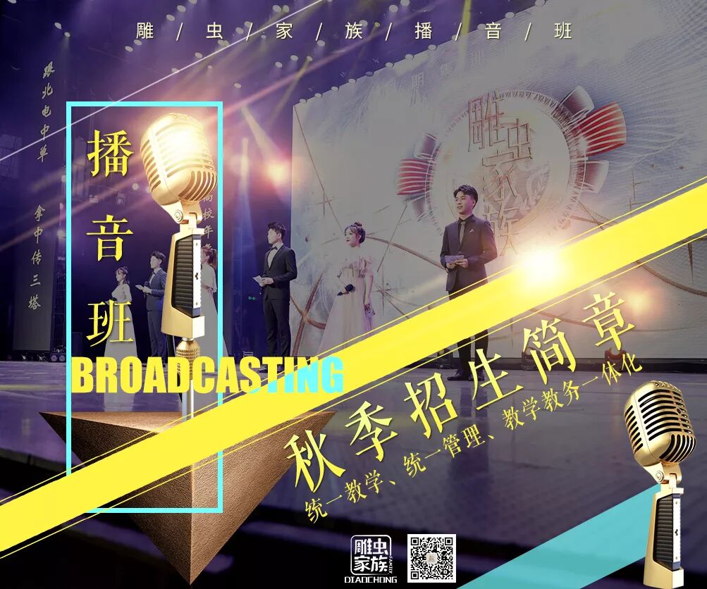 “喜欢”就是,夏天可真棒,可以吃冰玩儿水,坐在海边看书打发时光,吹着晚上七八点钟的风闲逛在街上,手捧播音教材朗读着新闻和绕口令,那么开心,谁也找不到散场回家的理由,而爱呢,是我和夏天的挥手告别,小声告诉它,我爱上了播音,因为如此喜欢你,所以我还想陪你去秋冬春看一看。 各位家长和同学们,在初秋的日子,首先感谢大家选择雕虫家族,我们2019年度的秋季播音班课程将在9月1日正式开课,届时我们的专业负责老师将会面对面与学生沟通关于各大院校艺考情况和上课的一些具体安排。 下面我们将会为大家介绍一下学习指南,希望能给大家带来帮助。 课程计划 本学期大概持续三个月左右时间,会根据每个孩子的学习情况制定符合他们的教学课程,有的放矢、因材施教,做到精细化的教学,精细化的管理,播音教务教学团队全程陪伴参与。 收费标准 收费标准:日常班—5000元/20次课 【每周二还有自愿参加的播音沙龙课,沙龙课程将于9月9号(周二)开始】 注:包含秋季日常上课资料、教材、课后复习规划和答疑指导 秋季班招生要求 1、热爱艺术或者对艺术有兴趣,形象气质佳,普通话语音基本标准; 2、学生文化课须达到所报艺术专业的最低标准,且文化课基础较好; 3、具有一定的语言表达能力,善于与人沟通交流; 4、身高:男生175+,女生163+,条件优秀者适当放宽。 课程安排 1、根据每一位播音孩子的声音、情感等条件,本学期将安排自备稿件课程,全程一对一自备稿件辅导,为每一名学生量身定做适合自己的自备稿件。 2、我们认为播音主持专业的考试形象造型与形体的考察特别重要,本学期特别安排形象造型与形体课程,针对孩子不同的问题进行适合他们的形体训练。 3、命题演讲的考试越来越被各大院校重视,本学期新增一门儿新课程,有效提升同学们的演讲能力! 4、本学期沙龙课回归考试内容为主题,我们会安排一些专业名校的真题训练,更注重不同类型新闻稿件的训练以及名家名篇的朗读。 5、综合面试指导,各大院校的政策解读。 课程学费包含 1、秋季20次日常课程 2、科学详细的各大院校备考计划 3、专业的艺考志愿填报指南 4、个人的高考志愿填报指南 5、课后复习的教学答疑反馈 备注:以上课程为教学大纲,具体课程以秋季课程表为准。 另每周日下午2:00为新班试听课,在试听课后,专业负责老师会与每位同学和家长进行一对一咨询答疑。 添加微信好友,咨询课程哦 联系方式:18032857923手机同微信